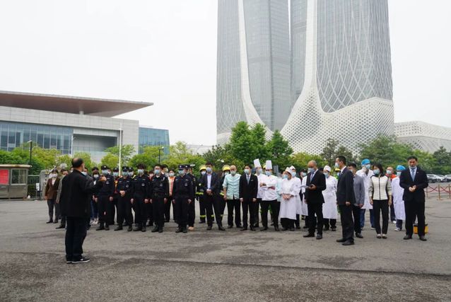 2021年4月23日上午,河西集團(tuán)南京國際博覽中心酒店(愛心賓館)消防疏散演練成功舉行。