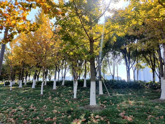 霜降過后,氣溫有了短暫的回升,但是隨著冬季到來,新一輪寒潮即將悄然來襲。為增強樹木的耐寒性及抗蟲性,近日,河西集團園林公司搶抓晴好天氣,精心組織綠化工人為南京市建鄴區(qū)、南通市崇川區(qū)等公司綠化管養(yǎng)范圍的樹木刷白“穿新衣”。