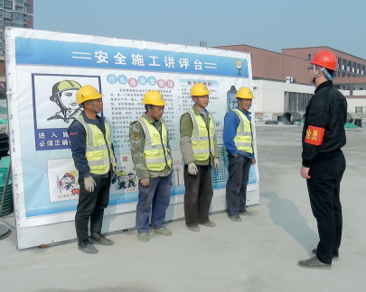 本工程施工范圍廣、涉及專業(yè)多,交叉施工影響大,安全文明管理難度高。為此項目部精心組織、科學(xué)策劃,從開展安全教育,提高全員安全意識著手,將安全教育工作常態(tài)化。并且嚴格實行工程安全技術(shù)交底制度、定期組織應(yīng)急演練、施工現(xiàn)場設(shè)置醒目的安全警示標(biāo)志,時刻提醒工人安全生產(chǎn)、規(guī)范作業(yè)。