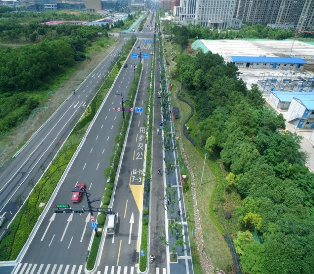 秦淮大道改造工程(開元路至幸莊路)景觀提升工程,位于南京市溧水區(qū)秦淮大道。景觀綠化面積45000平方米。道路綠化施工內(nèi)容主要包含道路中央綠化帶、行車道分隔綠化帶、人行道綠化帶、路邊綠化帶。道路綠化植物種類繁多,與周邊建筑、道路元素和諧搭配,使道路道路綠化景觀趨于自然,體現(xiàn)當(dāng)?shù)爻鞘械奶赜芯坝^,提升城市品味。
