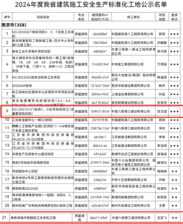 根據(jù)《南京市建設(shè)工程市級標準化工地評審辦法》,經(jīng)過嚴格評審程序,南京市城鄉(xiāng)建設(shè)委員會公布了2024年下半年南京市房屋市政工程安全文明標準化工地名單。河西集團奧體建設(shè)開發(fā)的丹若園、江尚紫薇、瑞香園、錦尚紫蘭四個項目脫穎而出,獲此殊榮。這些項目涵蓋不同施工階段,均展現(xiàn)了奧體建設(shè)對安全文明施工的高度重視,為集團后續(xù)同類項目施工管理樹立了良好典范。